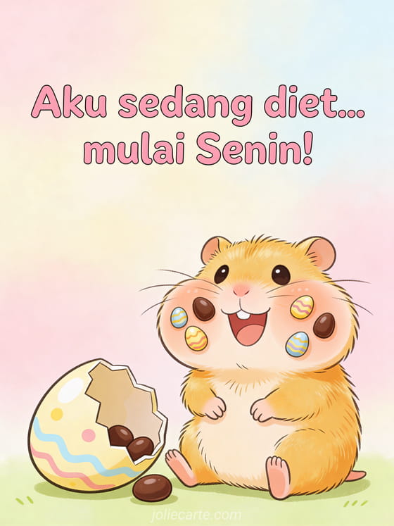 Bagikan tawa di hari Paskah dengan kartu kocak ini tentang diet dan telur cokelat. Temukan juga kartu lucu selamat Paskah untuk merayakan dengan humor.