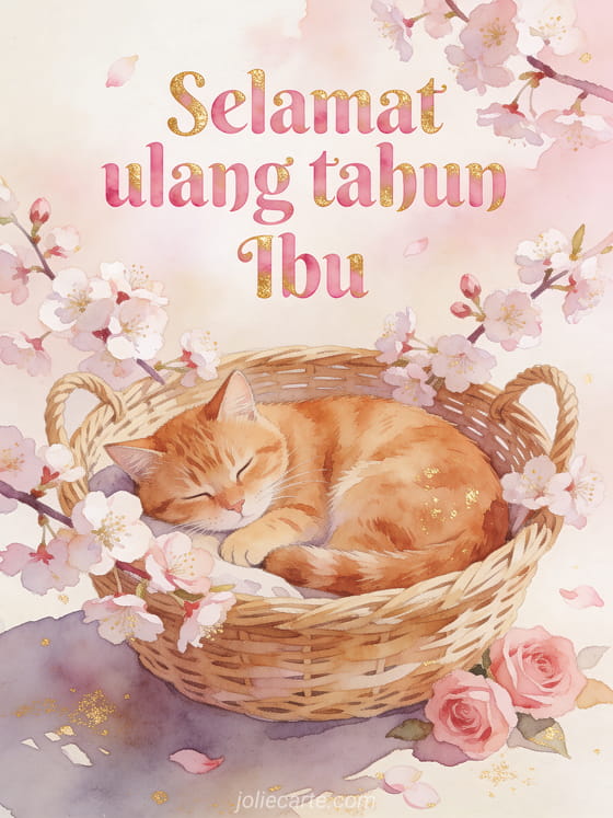 Selamat ulang tahun Ibu ucapan ulang tahun yang lembut dengan kucing oren yang manis