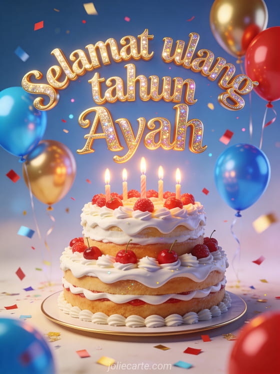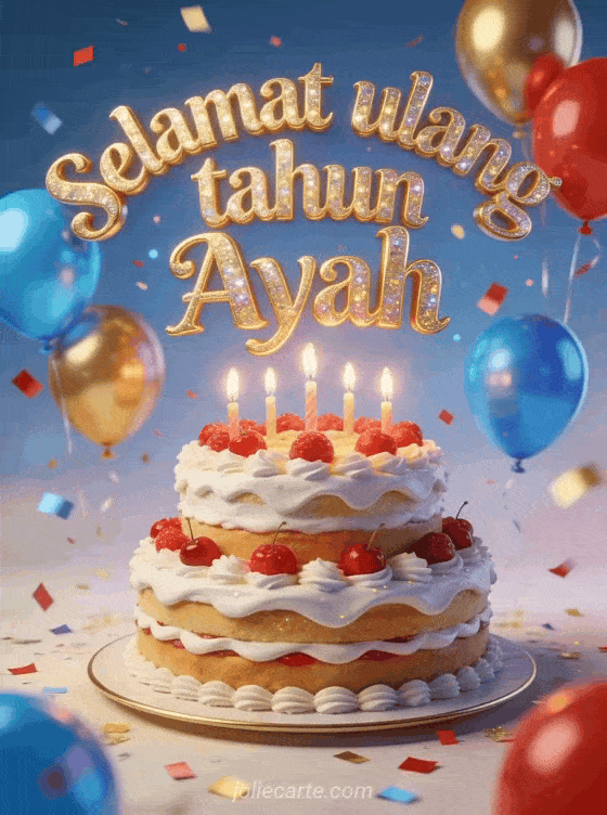 Rayakan ulang tahun Ayah dengan kartu meriah dan penuh warna yang dipenuhi kegembiraan. Temukan juga gambar ulang tahun untuk Ayah atau pesan ulang tahun untuk Ayah.