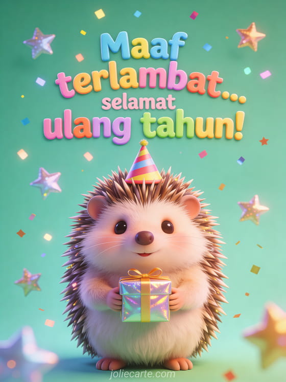 Kirim ucapan ulang tahun terlambat yang ceria kepada seseorang yang spesial dan buat mereka tersenyum meski terlambat. Temukan juga kartu selamat ulang tahun yang terlambat, telat itu gayaku selamat ulang tahun atau maaf terlambat selamat ulang tahun.