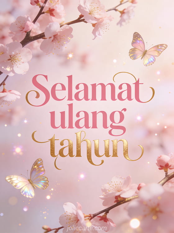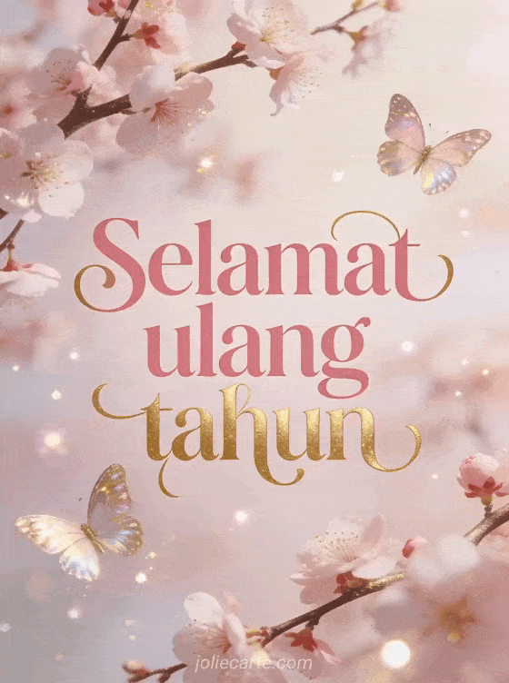 Kirimkan ucapan selamat ulang tahun yang halus dan elegan dengan kupu-kupu berkilau dan bunga sakura. Temukan juga kartu buket ulang tahun wanita, ecard ulang tahun wanita atau gif selamat ulang tahun wanita humor.