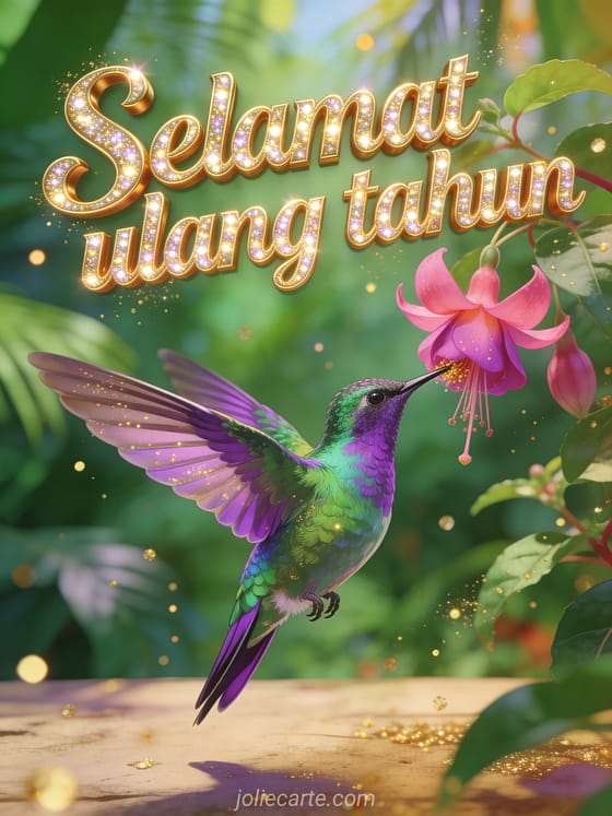 Selamat ulang tahun ucapan ulang tahun yang halus dengan kolibri berkilau