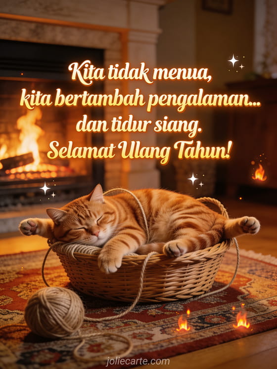 Kirimkan ucapan selamat ulang tahun yang lucu untuk mencerahkan hari spesial mereka. Kartu humor ini mengingatkan bahwa bertambah usia berarti bertambah bijak dan lebih banyak tidur siang. Temukan juga gif ulang tahun kucing lucu.
