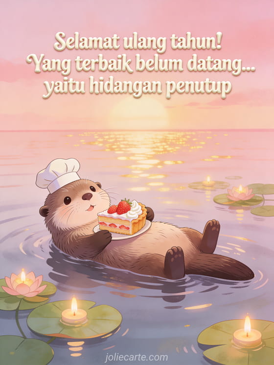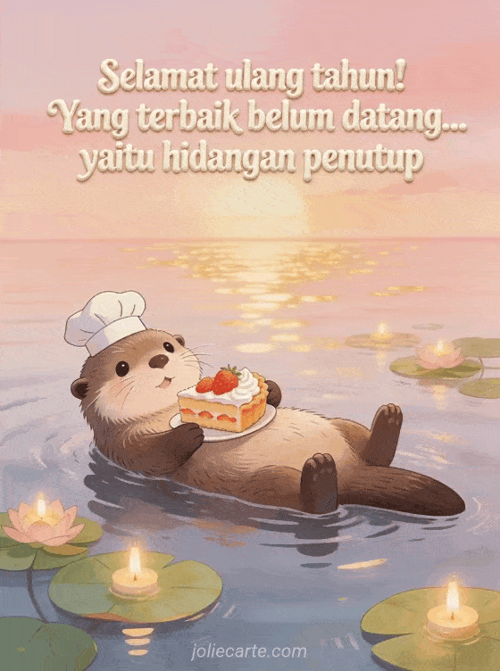 Kirim kartu ulang tahun menggemaskan ini dengan berang-berang chef imut mengapung di air memegang tart stroberi. Temukan juga kartu ulang tahun glamor kucing atau gif lucu ulang tahun kucing.