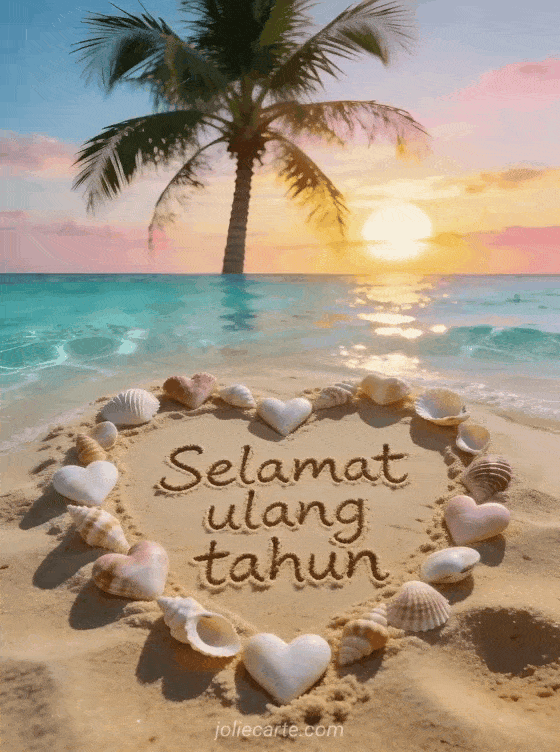 Kirimkan ucapan ulang tahun yang menenangkan dengan kartu indah bergambar tulisan di pasir emas pantai surga dengan air pirus dan kerang. Temukan juga kartu kejutan ulang tahun atau kartu ulang tahun dengan mawar.