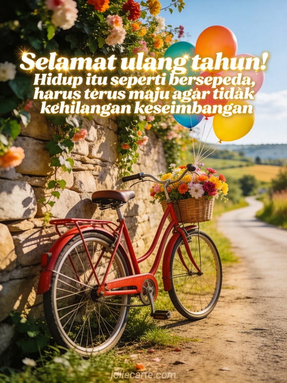 Selamat ulang tahun! Hidup itu seperti bersepeda ucapan yang menginspirasi dan ceria