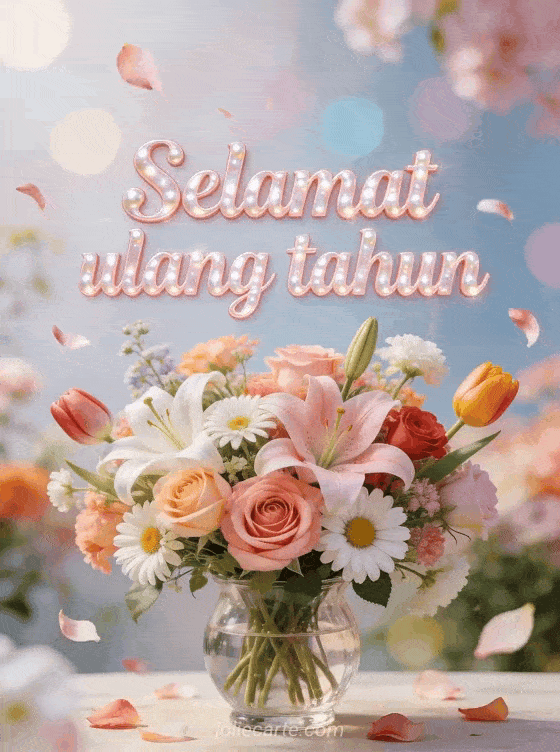 Selamat ulang tahun ucapan ulang tahun yang halus dengan buket bunga pastel yang indah