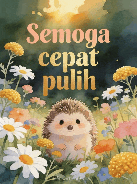 Kirimkan kartu menyentuh dengan pesan Semoga cepat pulih kepada orang tersayang. Temukan juga sebuah kartu pesan pemulihan, sebuah kartu kesembuhan penuh cinta atau sebuah kartu cinta dan penyembuhan.