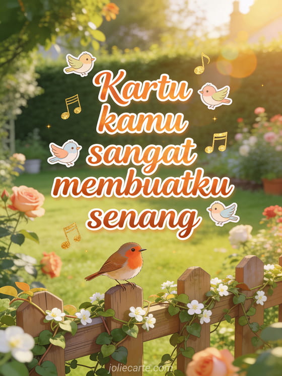 Kartu kamu sangat membuatku senang kartu terima kasih yang ceria dengan burung robin di taman
