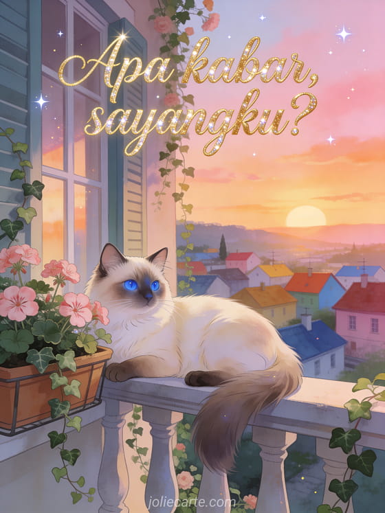 Kirim ucapan lembut apa kabar, sayangku untuk menunjukkan kasih sayangmu. Temukan juga kartu dengan aku baik-baik saja terima kasih, dengan hai apa kabarmu atau dengan selamat pagi sayang apa kabarmu.