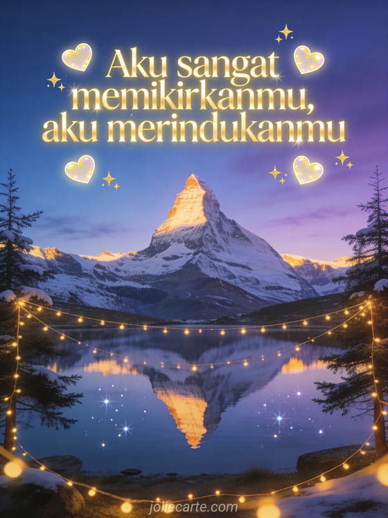 Katakan kepada seseorang yang istimewa betapa kamu merindukannya dengan kartu indah ini yang penuh hati dan bintang. Ilustrasi romantis yang lembut untuk mengungkapkan perasaan terdalammu. Temukan juga kartu memikirkanmu dengan ciuman atau kartu aku mencintaimu memikirkanmu.