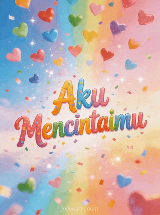Kirimkan kartu ucapan ceria ini dengan hujan hati berwarna-warni jatuh dari langit di atas latar belakang pelangi pastel yang cerah. Temukan juga kartu aku juga mencintaimu atau kartu aku mencintaimu tanpa batas.
