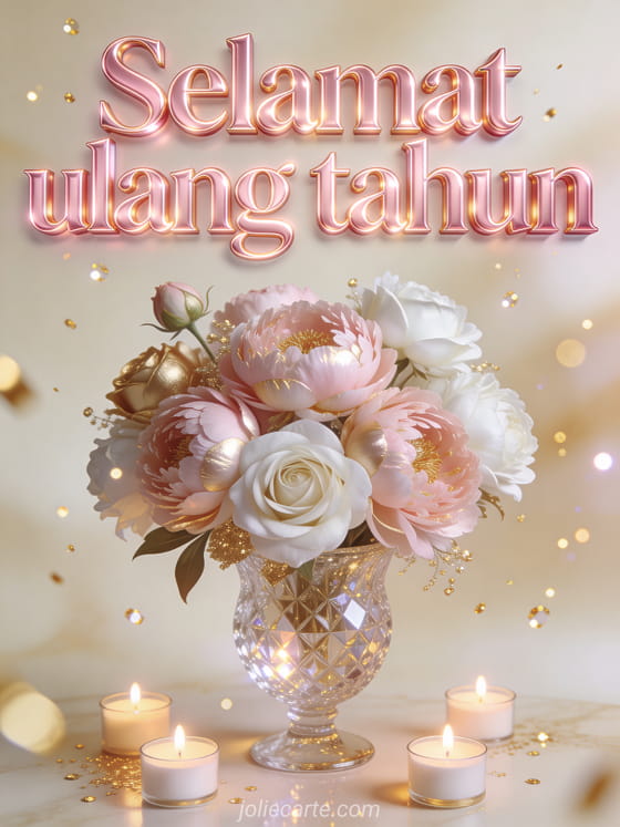 Kirim ucapan selamat ulang tahun yang elegan untuk merayakan hari istimewa seseorang dengan keindahan dan keanggunan. Jadikan momen ini benar-benar tak terlupakan. Temukan juga GIF ulang tahun untuk Ibu, selamat ulang tahun untuk Ibu tersayang atau kartu ulang tahun untuk Ibu.