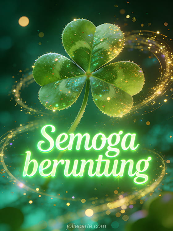 Doakan keberuntungan seseorang dengan kartu ucapan yang ajaib ini. Semanggi berdaun empat raksasa bersinar dengan glitter emas yang berputar, di latar belakang hijau zamrud yang dalam dengan titik-titik bercahaya, menciptakan suasana ajaib pembawa keberuntungan.
