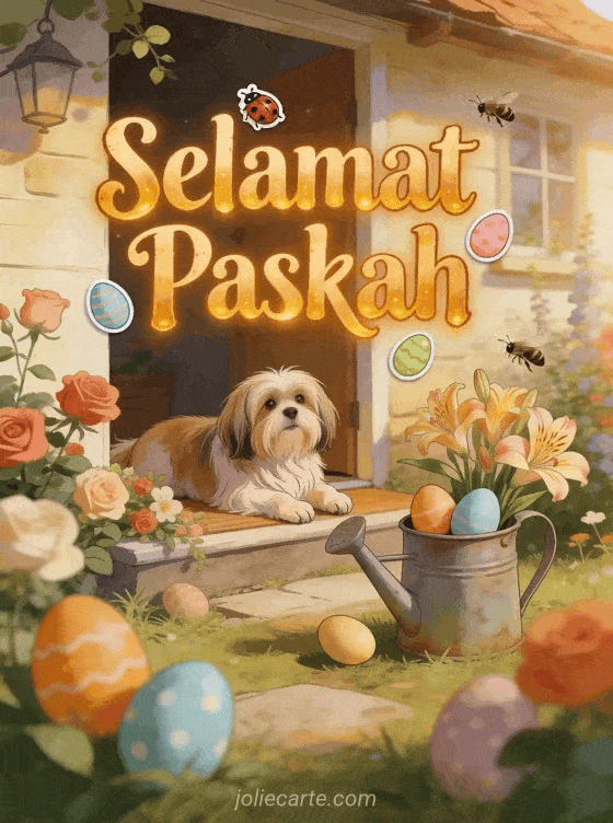 Rayakan dengan kartu animasi indah ini. Kirim pesan Selamat Paskah ini kepada orang-orang tersayang secara gratis. Temukan juga kartu Paskah atau Cartes bonnes fĂȘtes de pĂąques.