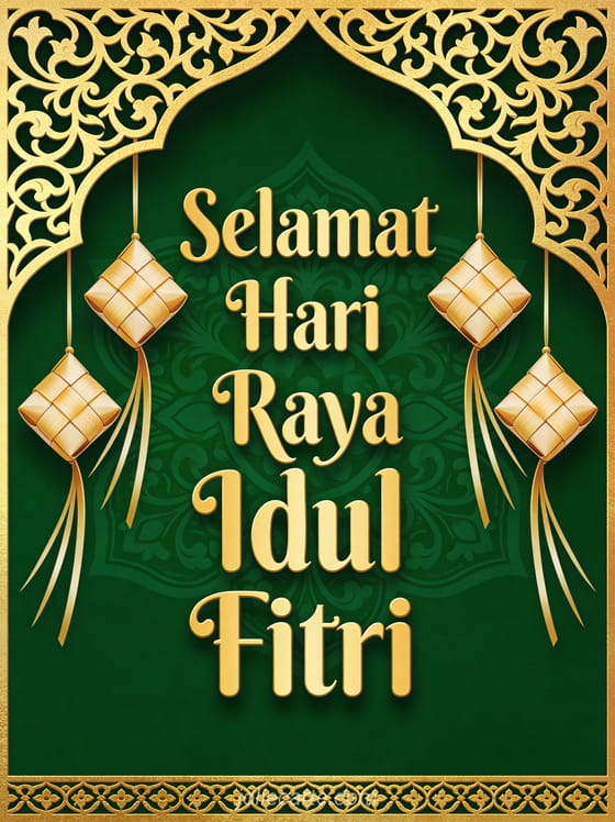 Selamat Hari Raya Idul Fitri kartu lebaran aesthetic dengan sentuhan tradisional