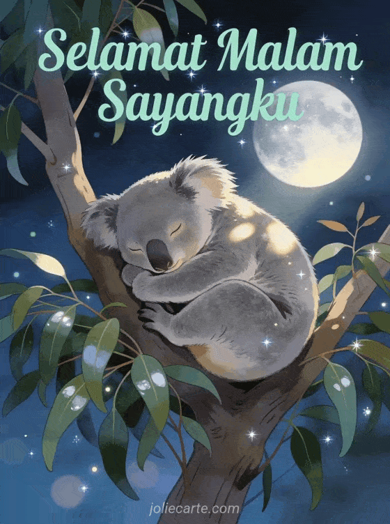 Selamat Malam Sayangku kartu selamat malam yang damai dengan koala tidur