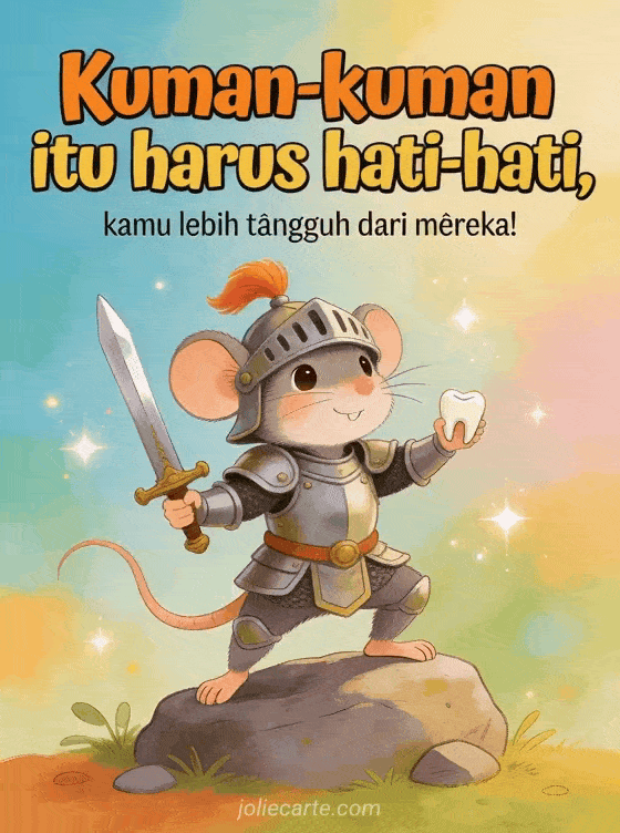 Kirim pesan lucu dan berani lekas sembuh kepada seseorang yang melawan penyakit. Kartu menawan ini dengan tikus pemberani dalam baju besi ksatria pasti akan mengangkat semangatnya. Temukan juga sebuah kartu lucu dokter Google atau sebuah kartu lucu tikus pemberani.