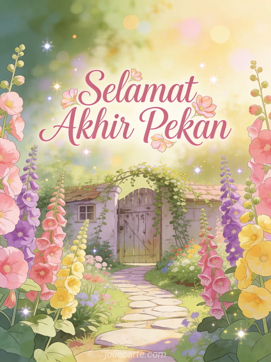 Ucapkan selamat akhir pekan kepada orang-orang tersayang dengan kartu indah bergambar taman bunga yang penuh warna.
