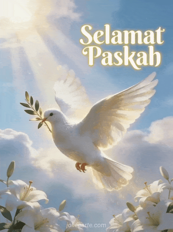 Kirim ucapan Selamat Paskah yang indah dengan kartu bergambar merpati putih dalam cahaya ilahi. Temukan juga kartu Paskah religius, gambar Paskah Kristen, atau ucapan Paskah Katolik.