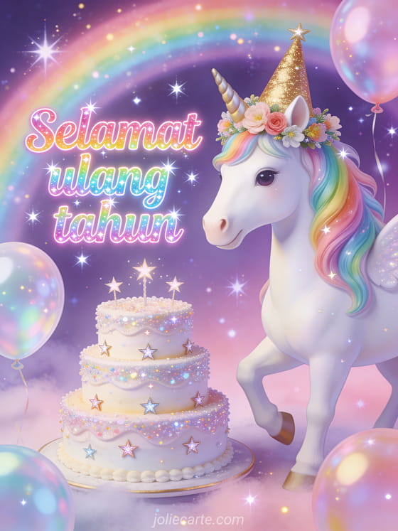 Jadikan ulang tahun anak istimewa dengan kartu dongeng bertema unicorn pelangi ini. Temukan juga kartu ulang tahun bayi.