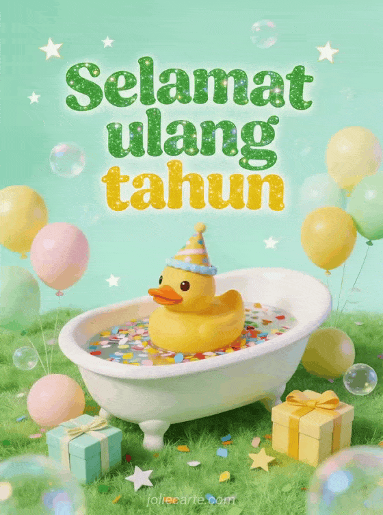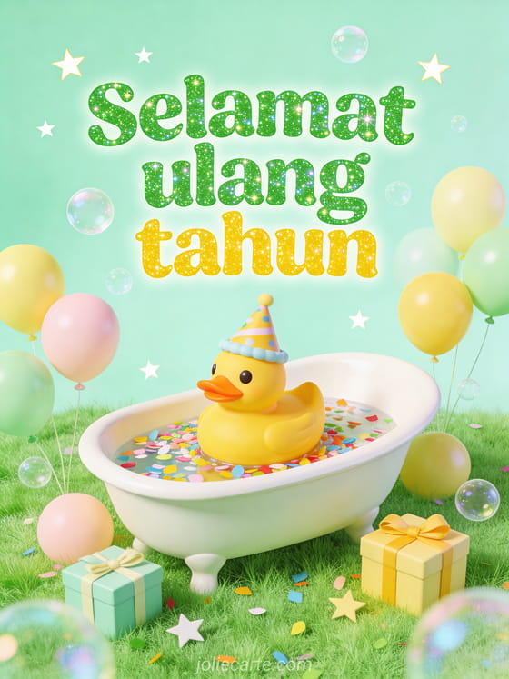 Rayakan ulang tahun bayi dengan kartu ceria bertema bebek karet yang lucu ini. Temukan juga kartu ulang tahun anak kucing atau kartu ulang tahun unicorn.