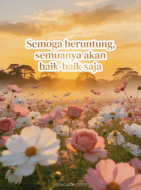 Kirim doa hangat keberuntungan kepada seseorang yang menghadapi operasi atau tantangan. Kartu fotorealistis ini dengan ladang cosmos pink di bawah matahari terbenam keemasan menyampaikan harapan dan semangat Anda. Temukan juga sebuah kartu semangat yang menenangkan, sebuah kartu semangat untuk operasi atau sebuah kartu semangat dan perhatian.