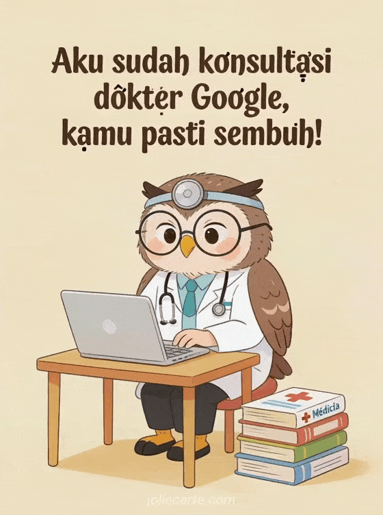 Aku sudah konsultasi dokter Google, kamu pasti sembuh! pesan lucu lekas sembuh untuk mencerahkan hari seseorang