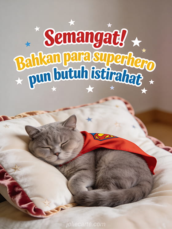 Semangat! Bahkan para superhero pun butuh istirahat pesan imut dan lucu untuk seseorang yang butuh istirahat