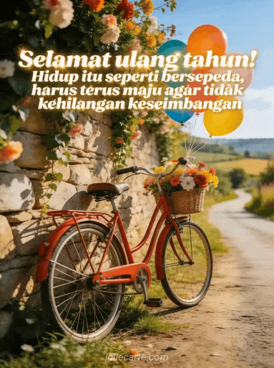 Selamat ulang tahun! Hidup itu seperti bersepeda ucapan yang menginspirasi dan ceria