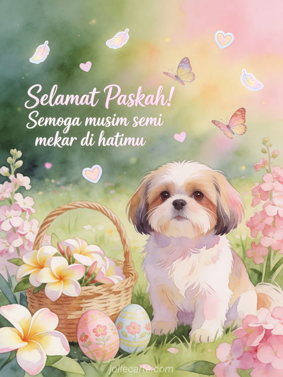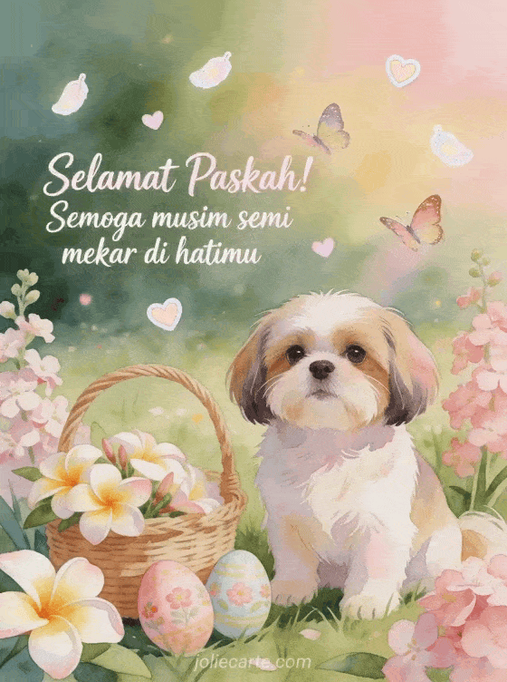 Rayakan dengan kartu animasi indah ini. Kirim pesan Selamat Paskah! Semoga musim semi mekar di hatimu ini kepada orang-orang tersayang secara gratis. Temukan juga Paskah atau Paskah.