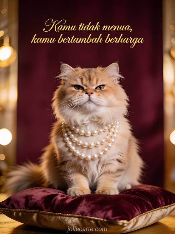 Kirim kartu ulang tahun elegan dan penuh humor ini dengan kucing Persia angkuh bermutiara di atas bantal beludru. Temukan juga kartu kutipan lucu ulang tahun atau gambar lucu ulang tahun.