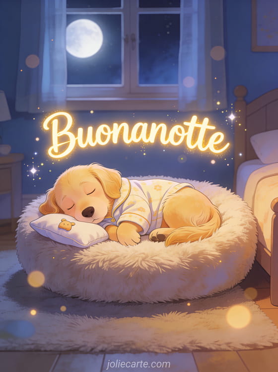 Augura una dolce e tranquilla buonanotte con un saluto caldo e adorabile. Scopri anche un biglietto buonanotte sogni d'oro o un biglietto buona serata e buona notte.