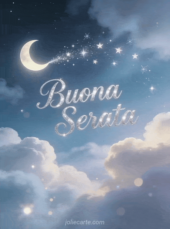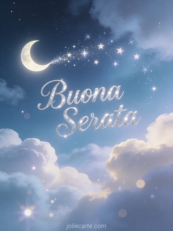 Buona Serata un sognante biglietto serale con baci di polvere di stelle