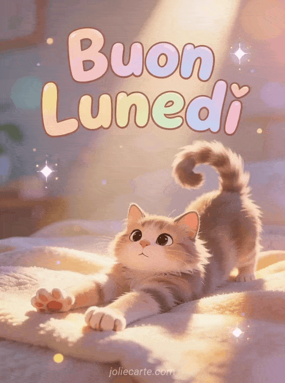 Inizia la settimana con il sorriso inviando questa adorabile cartolina Buon Lunedì con un tenero gattino nel raggio di sole mattutino. Scopri anche una cartolina lunedì floreale.