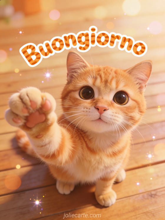 Invia un dolce buongiorno con un adorabile gatto che saluta per rallegrare la giornata. Scopri anche un' immagine buongiorno umoristica, un messaggio del mattino toccante o un buongiorno tenero e affettuoso.