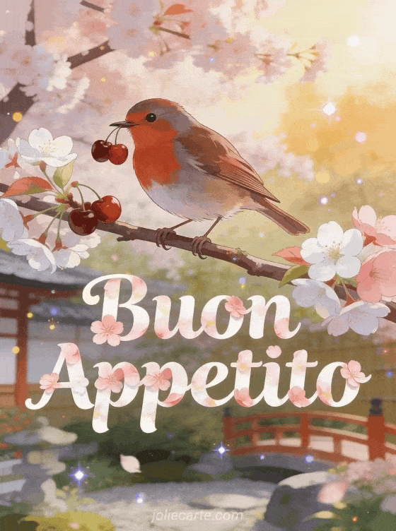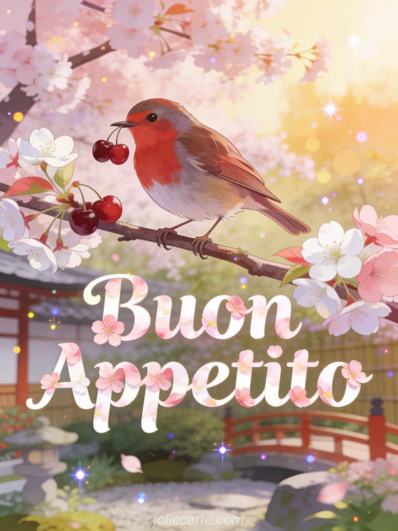 Invia un fresco buon appetito con una bella atmosfera primaverile. Scopri anche un buon appetito divertente, un buon appetito con umorismo o un buon appetito simpatico.