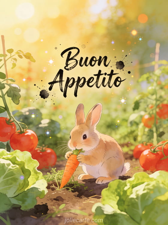 Invia un allegro buon appetito per rallegrare il momento del pasto. Un modo delizioso per augurare un buon pasto con calore e buon umore.