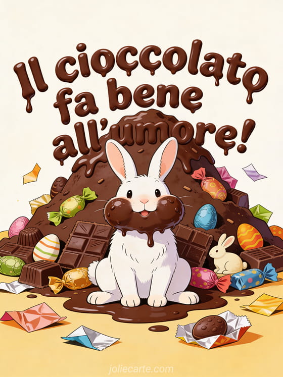 Condividi una bella risata a Pasqua con questo divertente biglietto sul cioccolato e il buon umore. Scopri anche un divertente biglietto di Pasqua con humor per festeggiare con un sorriso.