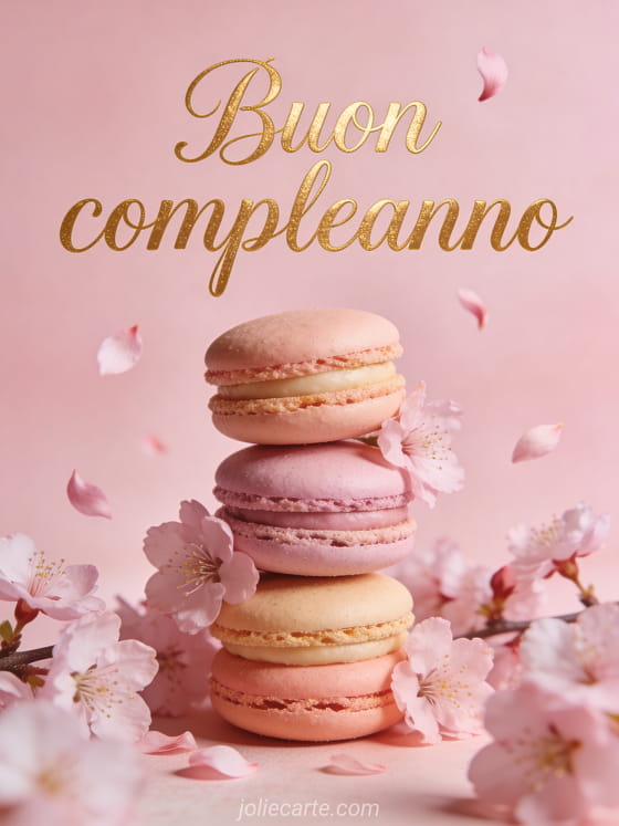 Invia questo dolce augurio di compleanno con delicati macarons pastello e fiori di ciliegio per rendere speciale la giornata di qualcuno. Scopri anche un biglietto di compleanno per adolescente o un immagine di compleanno per ragazza adolescente o un biglietto di compleanno per ragazza adolescente.