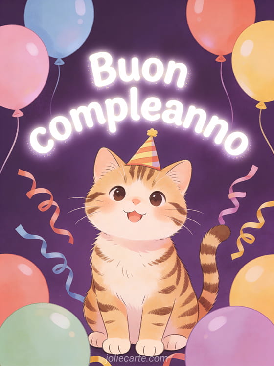 Invia questo tenero augurio di compleanno con un adorabile gatto tigrato con cappellino da festa per rallegrare una giornata speciale. Scopri anche un biglietto di compleanno per ragazza adolescente o un biglietto gratis di compleanno per ragazzo adolescente o un biglietto di compleanno per ragazzo adolescente.
