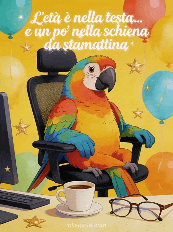 L'età è nella testa... e un po' nella schiena da stamattina una cartolina di compleanno colorata e esilarante