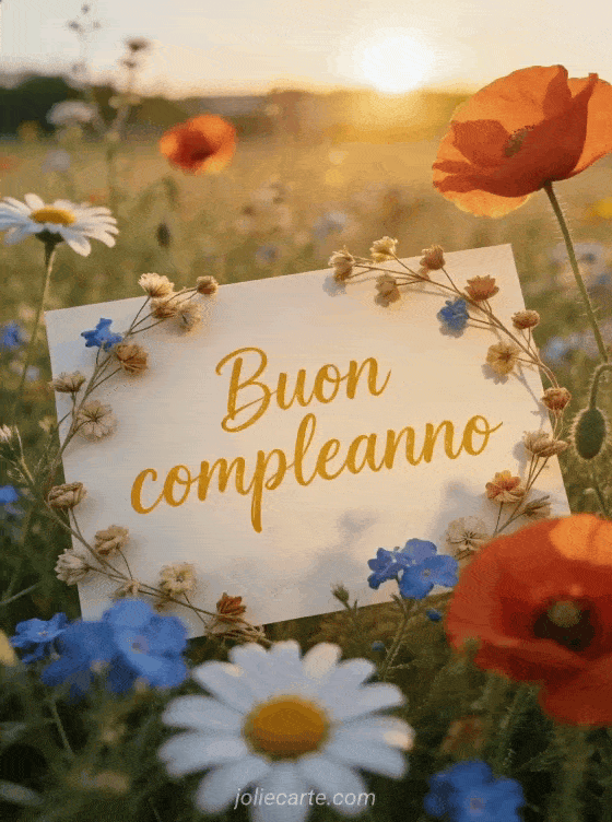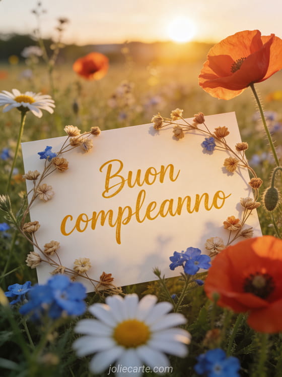 Festeggia un compleanno speciale con questo bellissimo biglietto con un campo di fiori selvatici al tramonto. Scopri anche un biglietto di compleanno gratuito o un biglietto con auguri di compleanno.