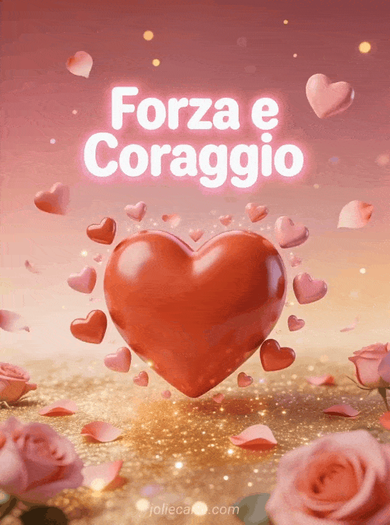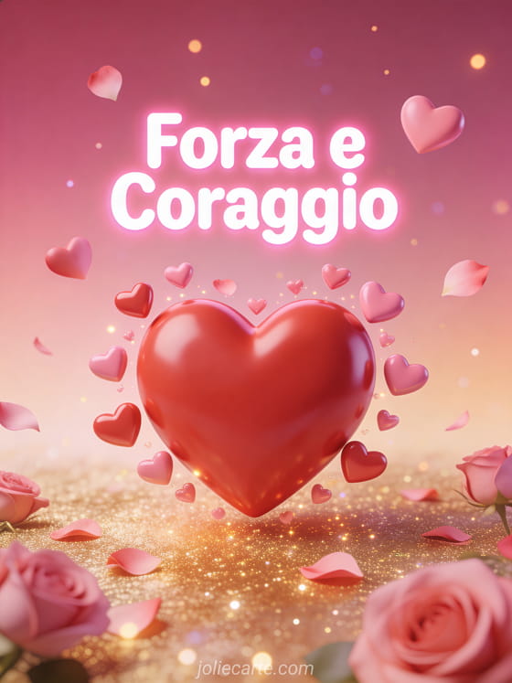Invia questo bellissimo biglietto di incoraggiamento con un grande cuore rosso in 3D circondato da cuoricini rosa fluttuanti e petali di rosa per confortare qualcuno. Scopri anche un biglietto di coraggio o un biglietto di forza e coraggio per altri messaggi sentiti.