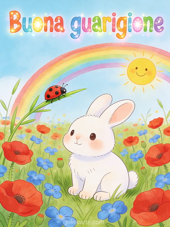 Invia un allegro biglietto con il messaggio Buona guarigione per rallegrare chi si sta riprendendo. Scopri anche un biglietto di coraggio e guarigione, un biglietto di forza e guarigione o un biglietto di guarigione e auguri.