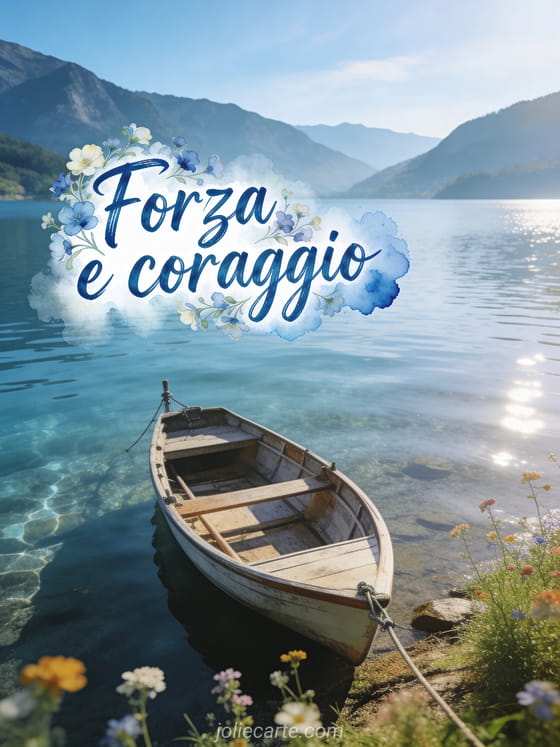 Invia questo bellissimo biglietto di incoraggiamento con un sereno paesaggio lacustre con montagne e una barca ormeggiata per portare serenita a qualcuno. Scopri anche un biglietto di coraggio divertente o un biglietto di coraggio per momenti difficili o un biglietto di coraggio gratuito.