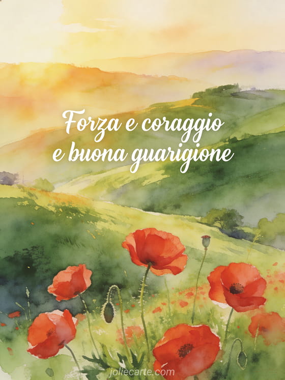 Invia un biglietto confortante con il messaggio Forza e coraggio e buona guarigione a una persona cara. Scopri anche un biglietto di guarigione per lei, un biglietto di guarigione per bambini o un biglietto di coraggio e guarigione.