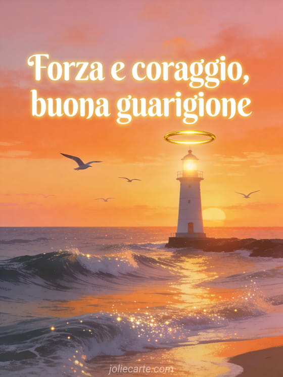 Invia un biglietto ispiratore con il messaggio Forza e coraggio, buona guarigione a una persona cara. Scopri anche un biglietto di coraggio e guarigione, un biglietto di guarigione per lei o un biglietto di guarigione per bambini.