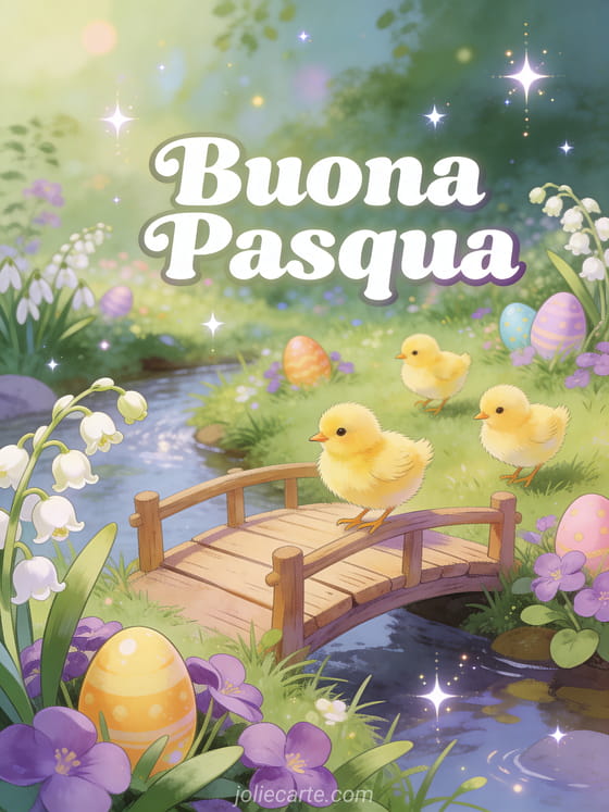 Invia incantevoli auguri di Pasqua ai tuoi cari con questo magico biglietto da fiaba. Scopri anche degli auguri di buona Pasqua, un' immagine di Pasqua da scaricare o un' illustrazione di Pasqua.