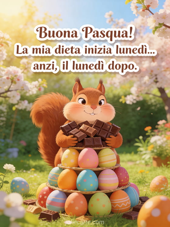 Condividi una bella risata a Pasqua con questo biglietto esilarante sulla tentazione del cioccolato. Scopri anche un divertente weekend di Pasqua, un humor di Pasqua o un divertente biglietto di Pasqua con humor.
